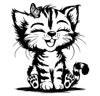 Cute Smiling cat and butterfly Free SVG File for Members – cat clipart image, sticker