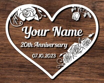 20th anniversary floral heart, custom name, anniversary gift – free svg file for members