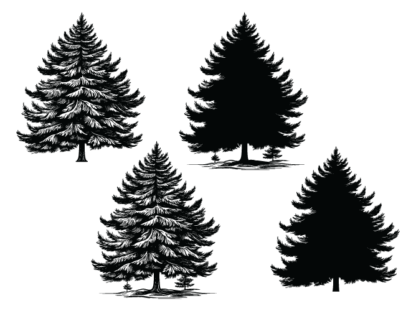 Christmas decor, Winter tree with snow, vector image svg bundle, spruce tree silhouette – free svg file for members