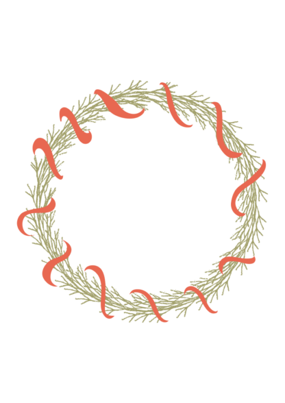 Circle Ornamental Wreath with Twisted Red Ribbon Free SVG File