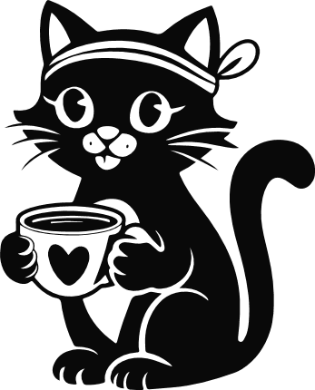 Cute Cat Holding Coffee Cup with heart Free SVG File – valentines cat silhouette, clipart image