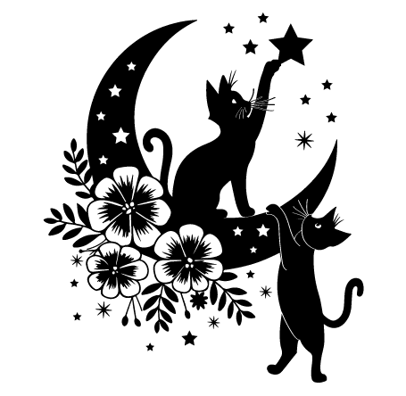 Floral moon and cats catching stars Free SVG File for Members – wall sticker