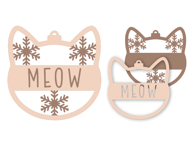 Meow, Cat Face Shaped Christmas Ornament Free SVG File for Members