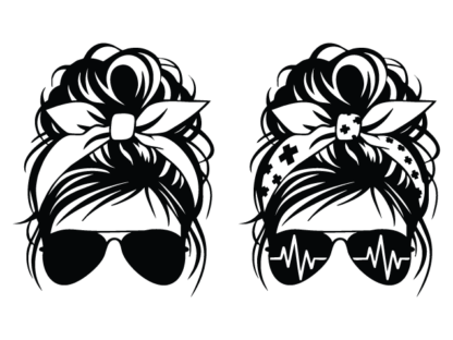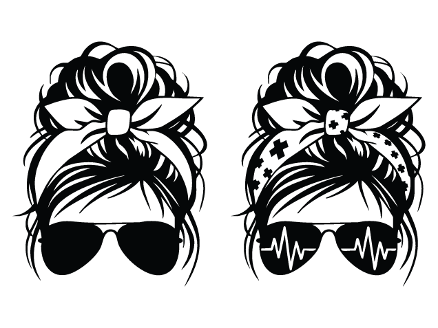 Messy Bun with heartbeat glasses Free SVG File for Members – healthcare sticker