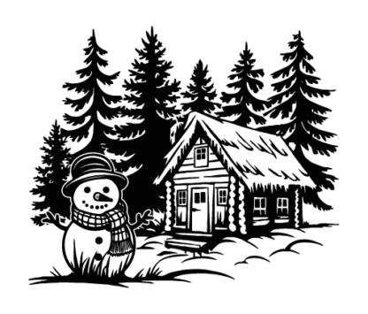 Snowman Standing in Front of House and trees Free SVG File for Members – Winter Wall Sticker