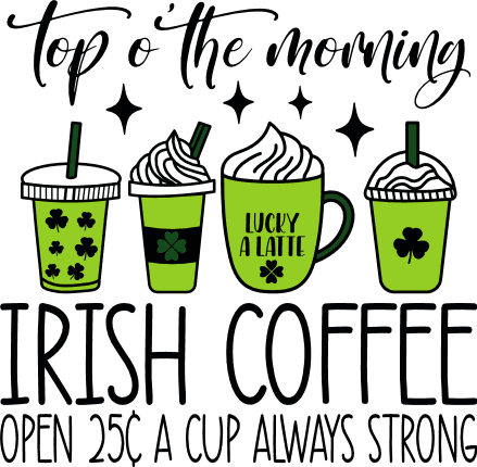 Top o’ the Morning Irish Coffee Free SVG File for Members – 25c a cup, St. Patrick’s Day wall sign