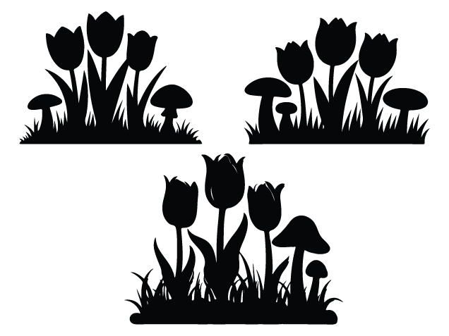 Tulips and Mushrooms silhouette Free SVG File Bundle for Members – Floral wall sticker