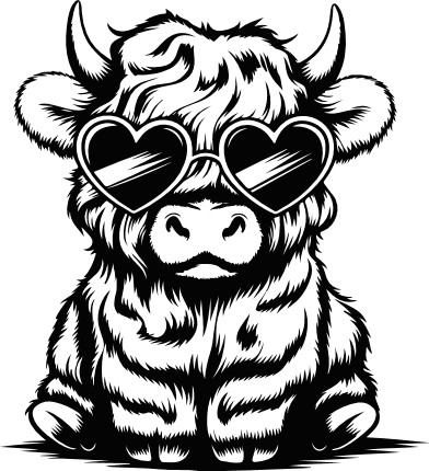 Valentine’s Highland cow Free SVG File for Members – Calf with Heart Sunglasses vector image