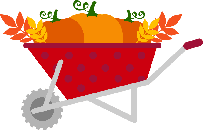 wheel barrow with dots, pumpkins and leaves, autumn free svg file